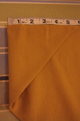 3. Miter the corners of the triangles. Flip both triangles inside out so that the right sides face out and iron flat. 4. Take the top corners of your two triangles (where the shorter edge and the diagonal meet), and fold them back 5 ½”. Set aside.